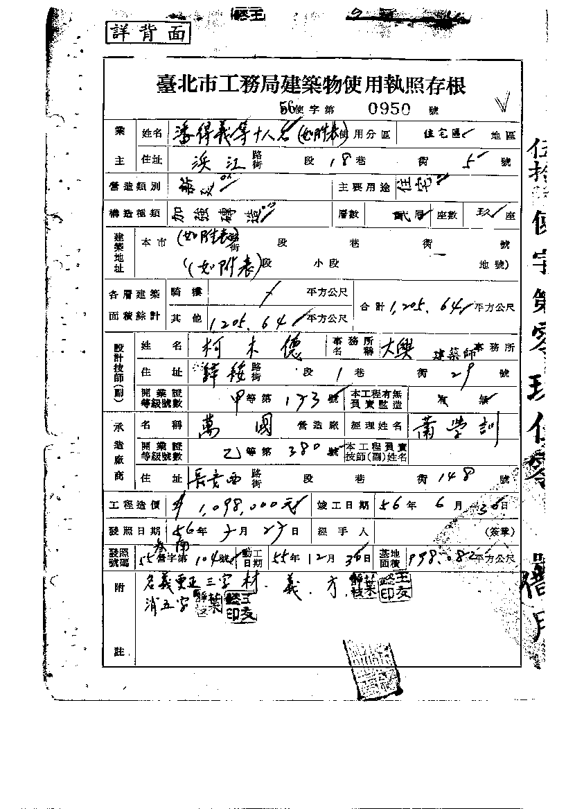 - 備註說明:使用執照存根附表