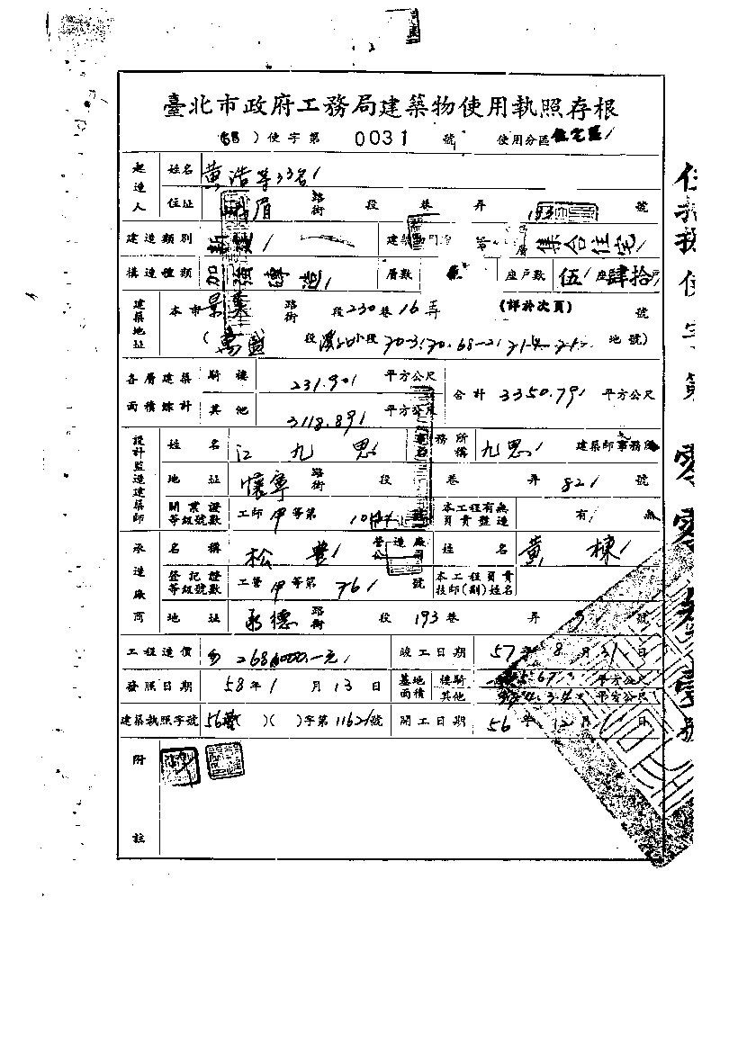 - 備註說明:使用執照存根附表