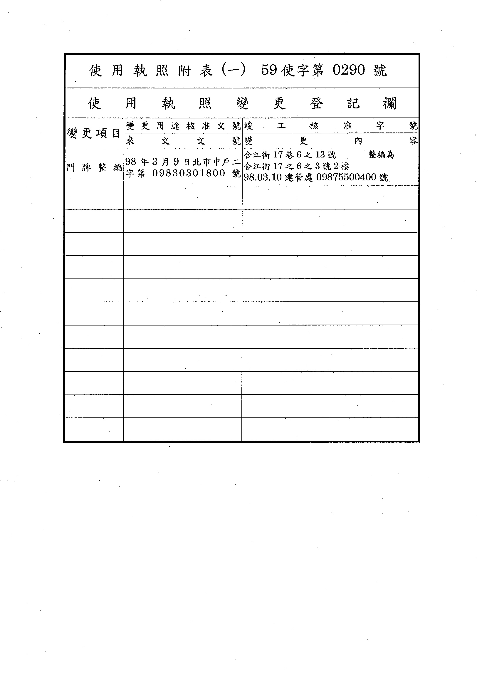- 備註說明:使用執照存根附表