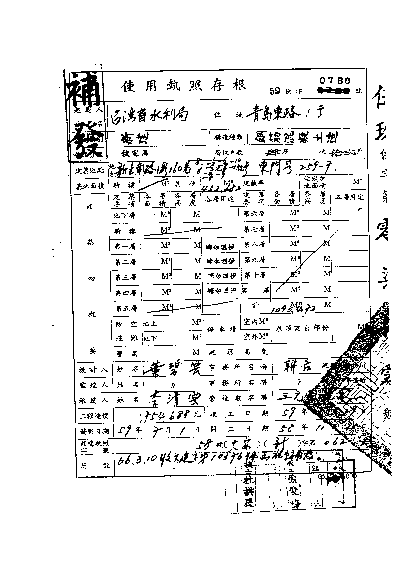 - 備註說明:使用執照存根附表