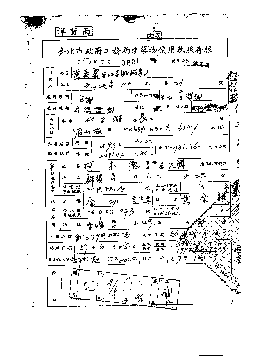 - 備註說明:使用執照存根附表