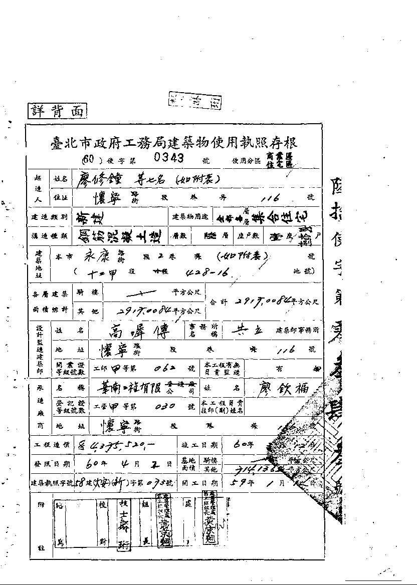 - 備註說明:使用執照存根附表