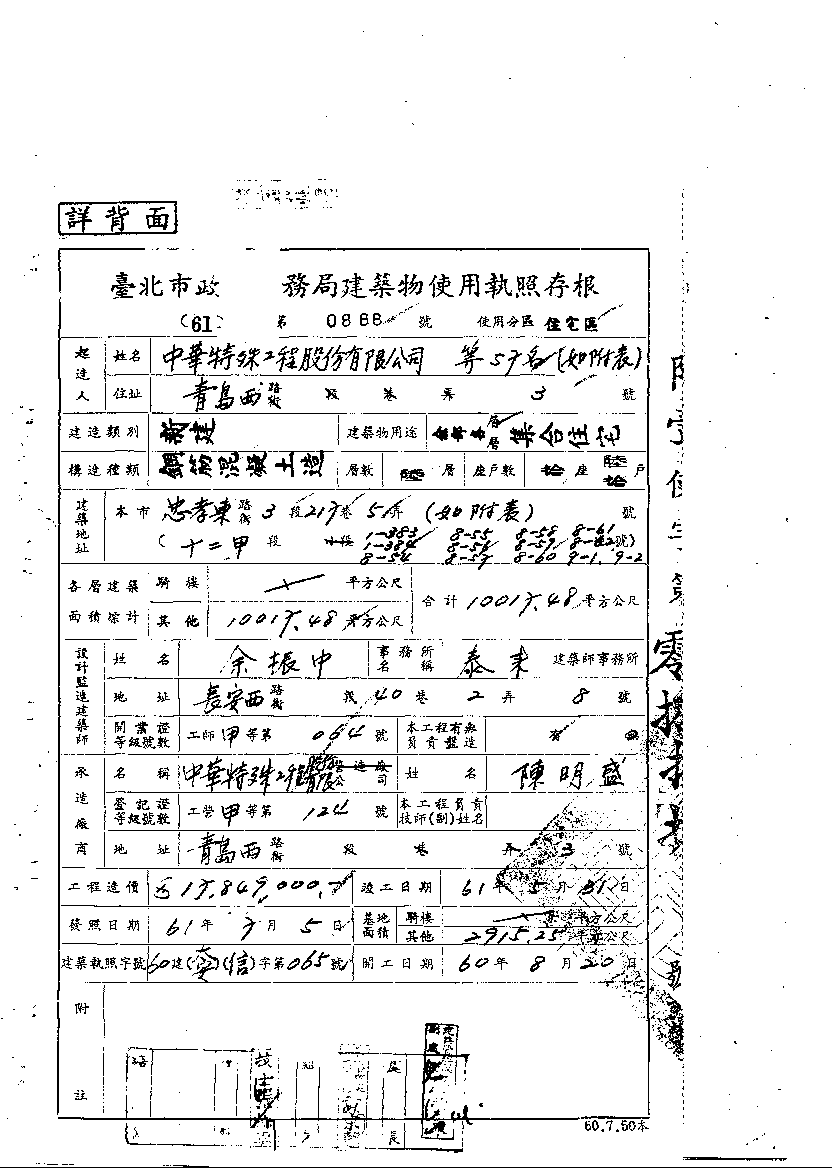- 備註說明:使用執照存根附表
