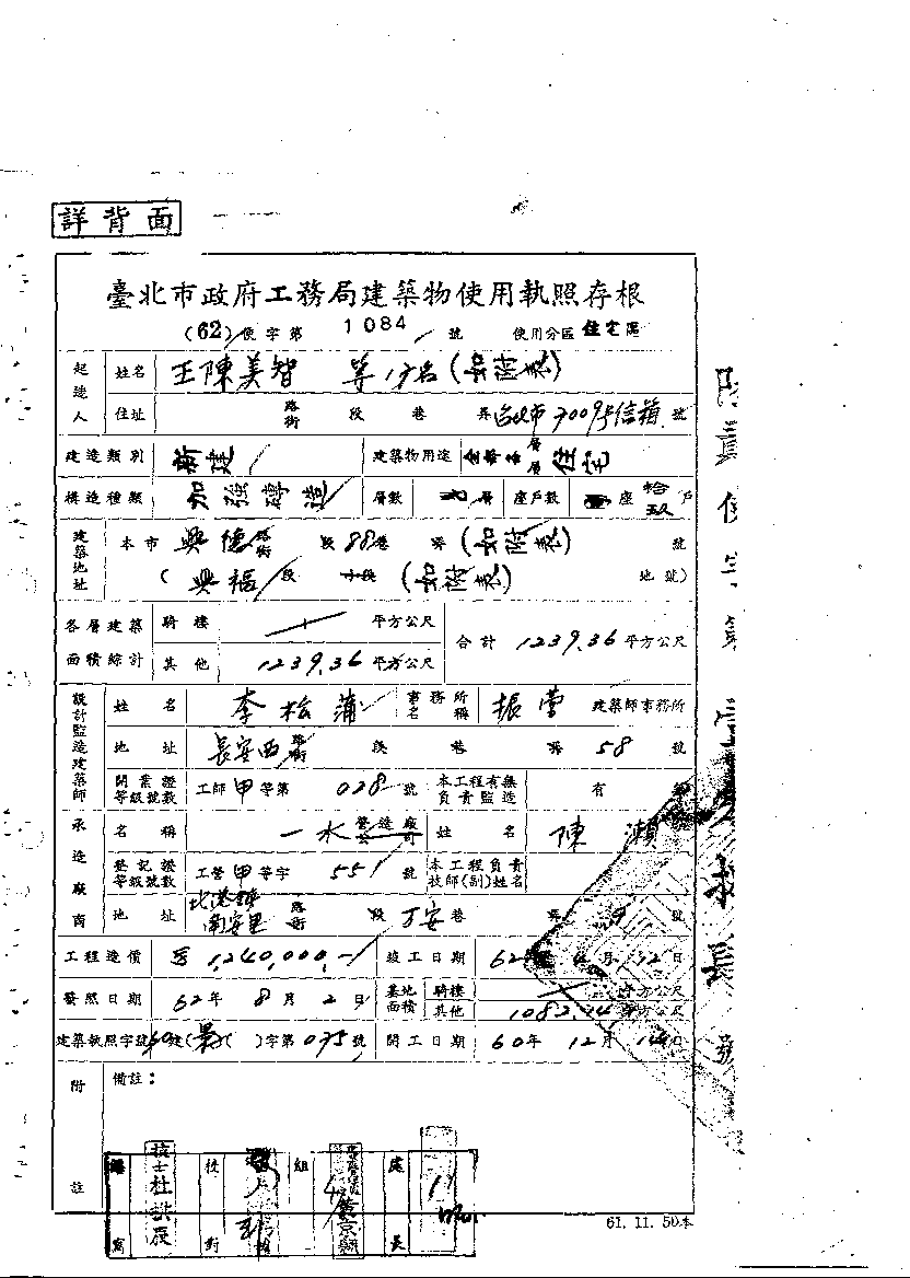- 備註說明:使用執照存根附表