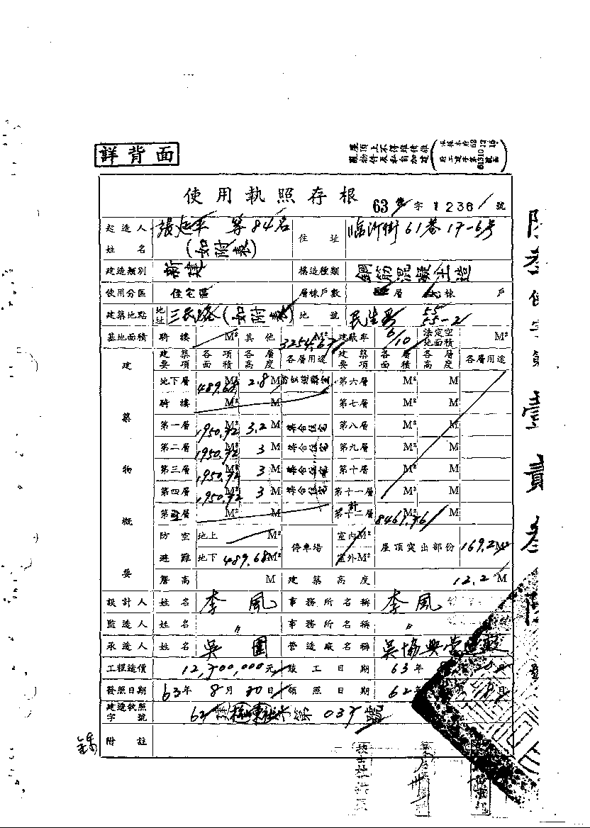 - 備註說明:使用執照存根附表