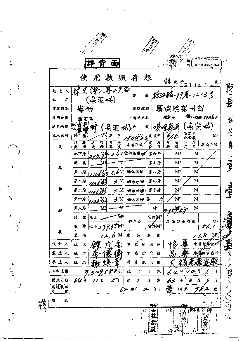 - 備註說明:使用執照存根附表