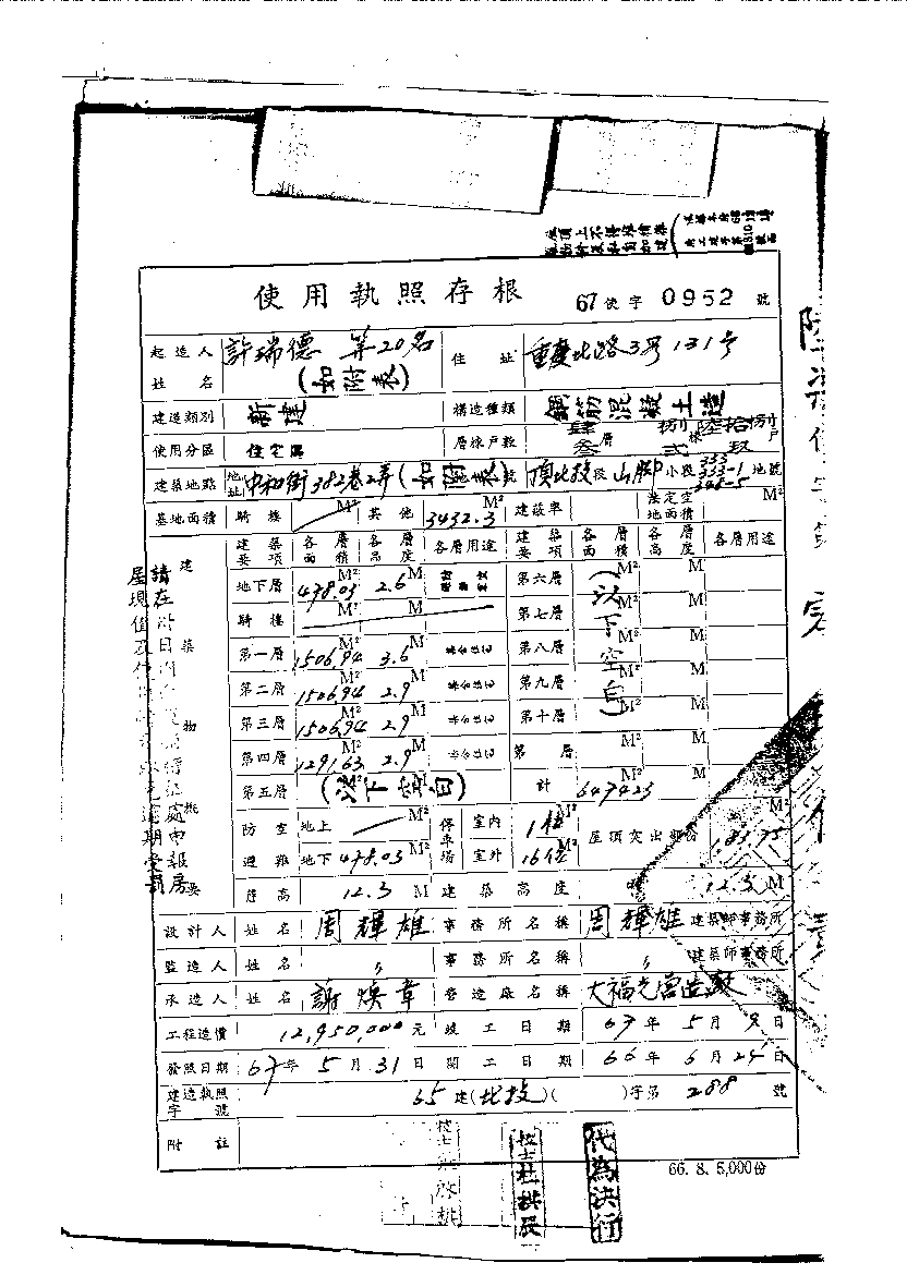 - 備註說明:使用執照存根附表