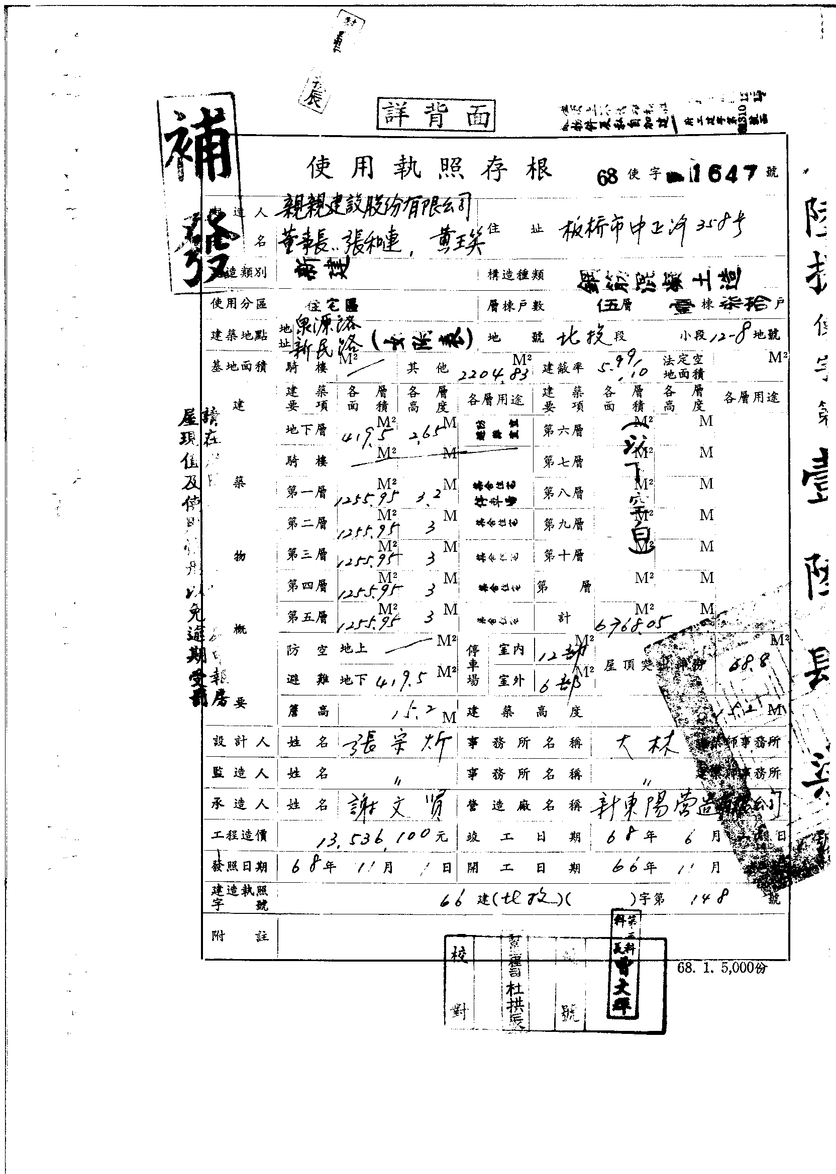 - 備註說明:使用執照存根附表