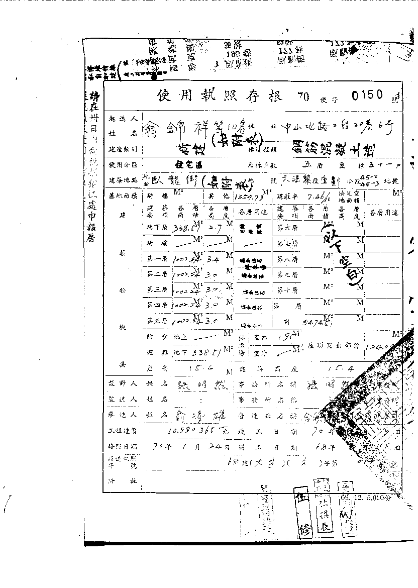 - 備註說明:使用執照存根附表