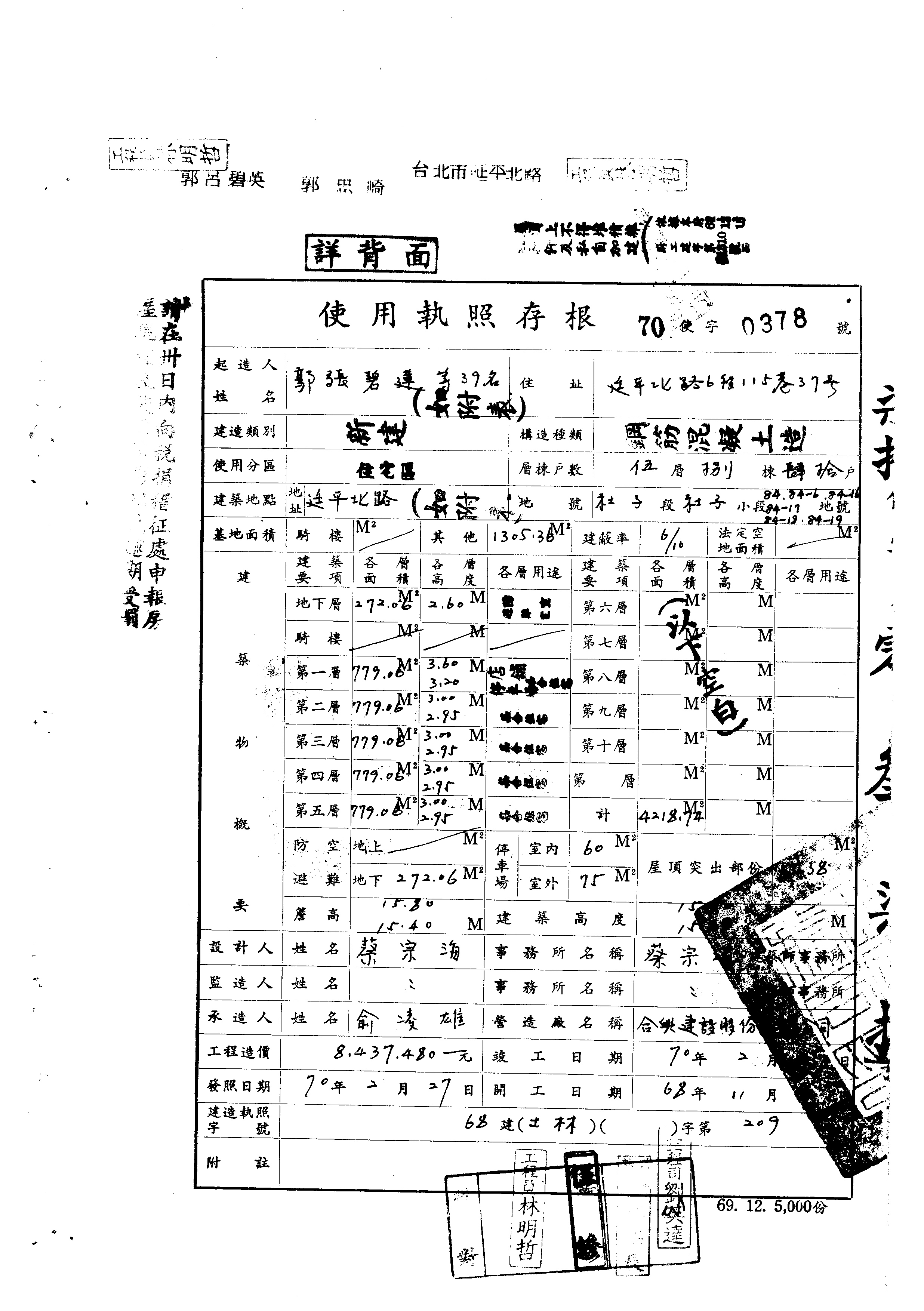 - 備註說明:使用執照存根附表