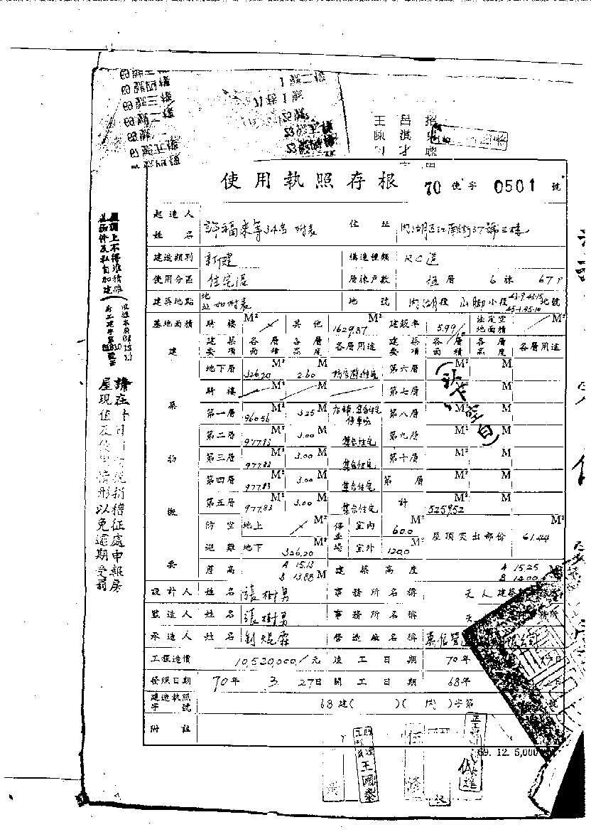 - 備註說明:使用執照存根附表
