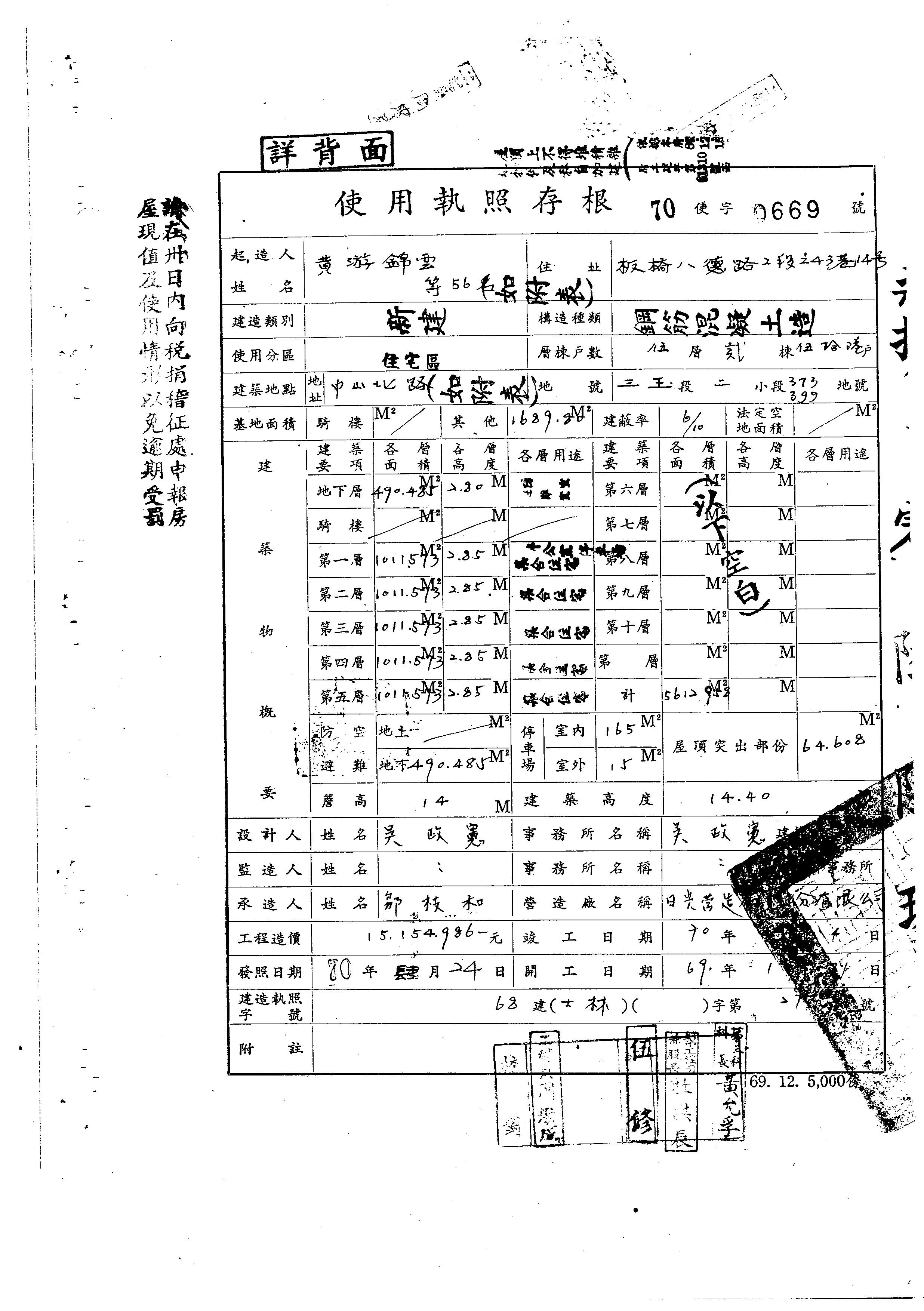 - 備註說明:使用執照存根附表