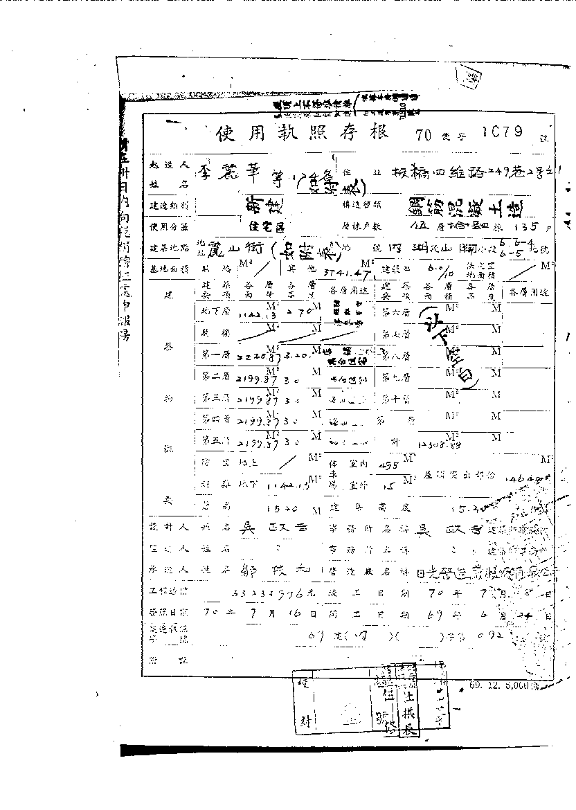 - 備註說明:使用執照存根附表