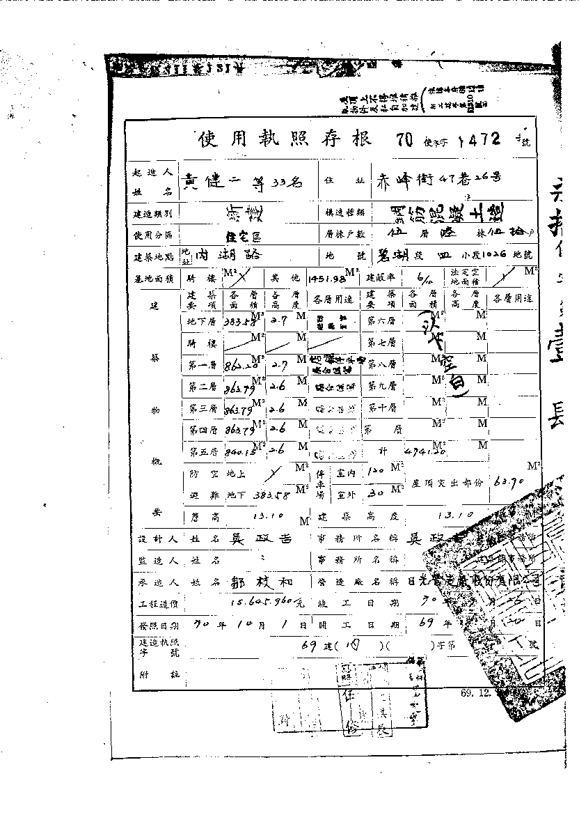 - 備註說明:使用執照存根附表
