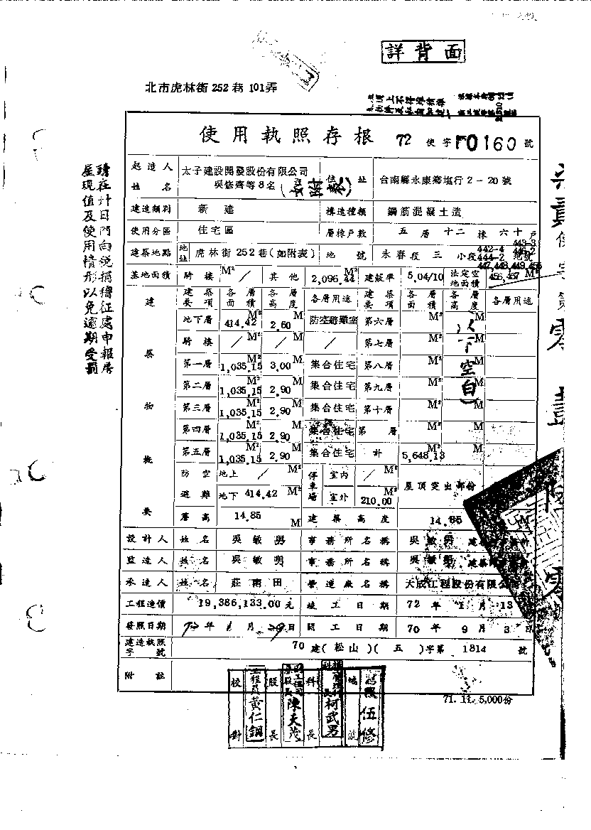 - 備註說明:使用執照存根附表