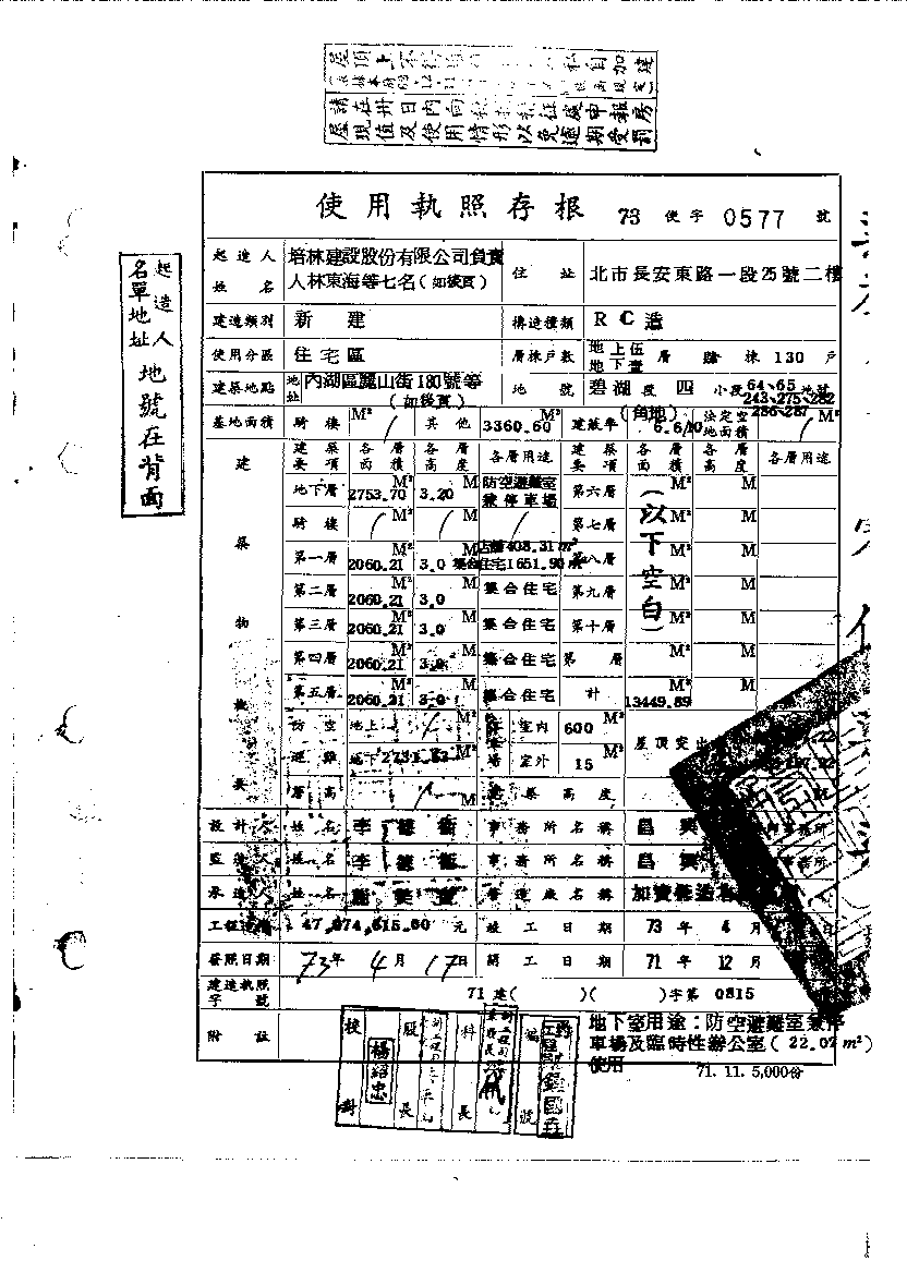 - 備註說明:使用執照存根附表