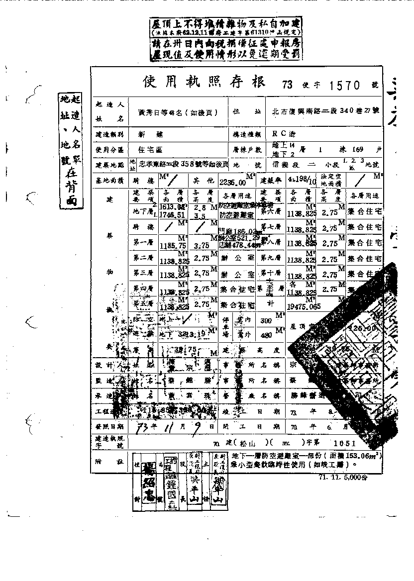 - 備註說明:使用執照存根附表