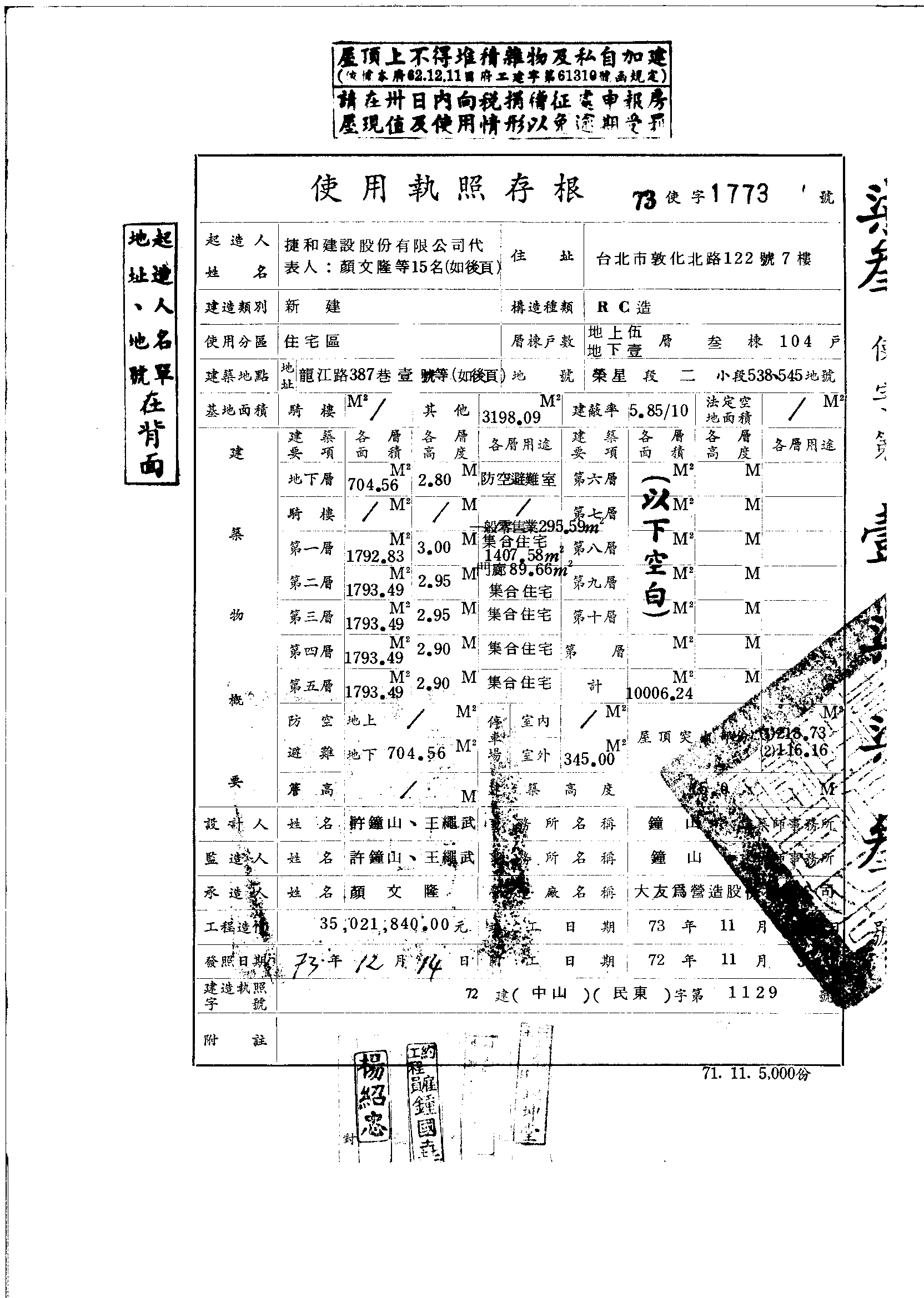 - 備註說明:使用執照存根附表