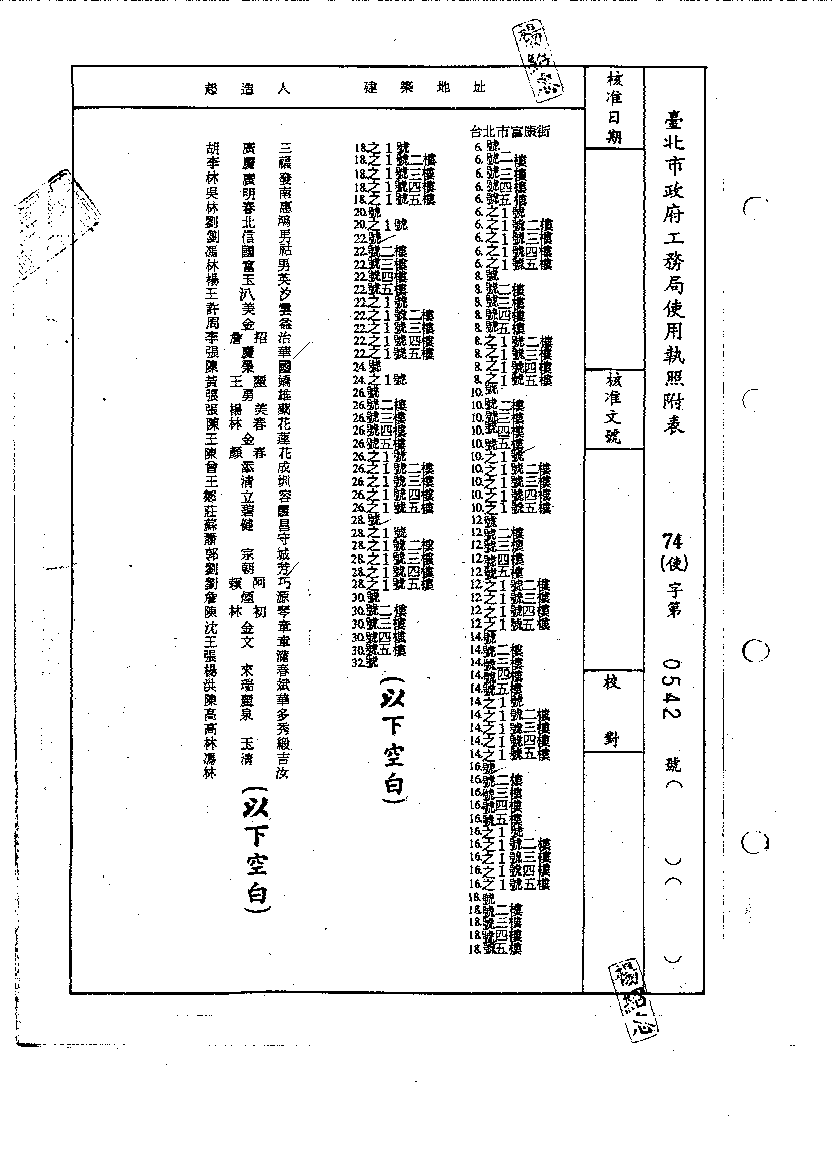 - 備註說明:使用執照存根附表