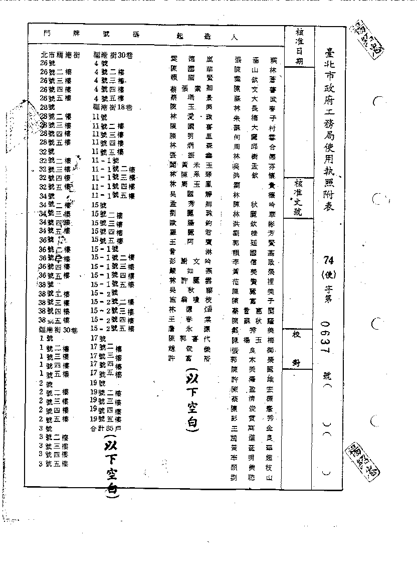 - 備註說明:使用執照存根附表
