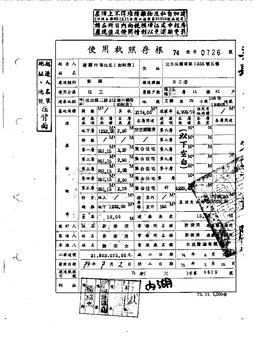 - 備註說明:使用執照存根附表