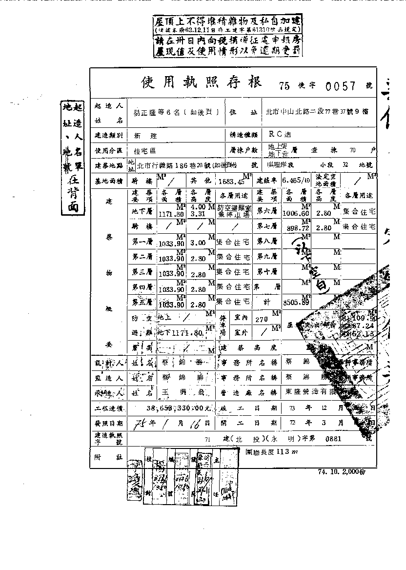 - 備註說明:使用執照存根附表