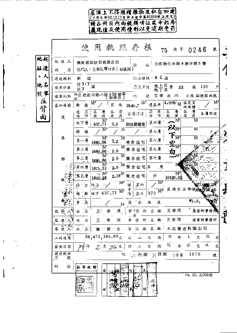 - 備註說明:使用執照存根附表