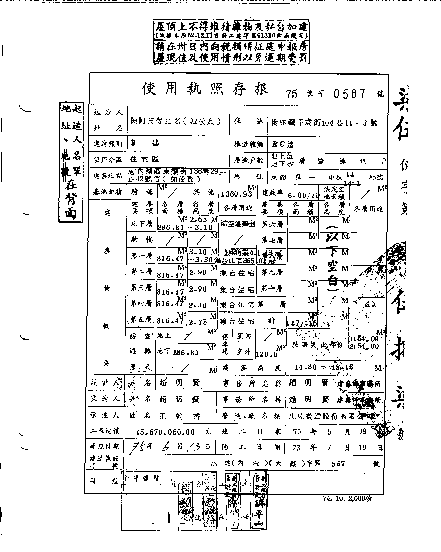 - 備註說明:使用執照存根附表