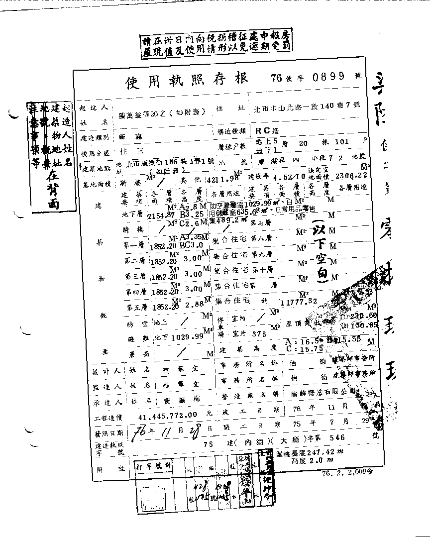 - 備註說明:使用執照存根附表
