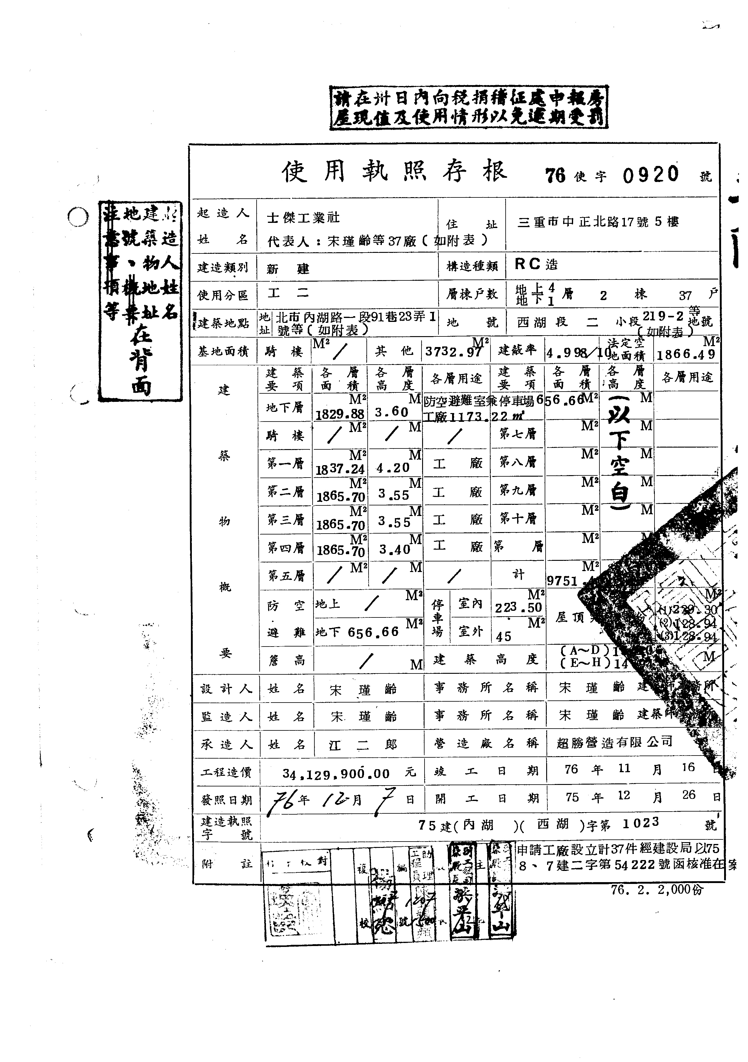 - 備註說明:使用執照存根附表