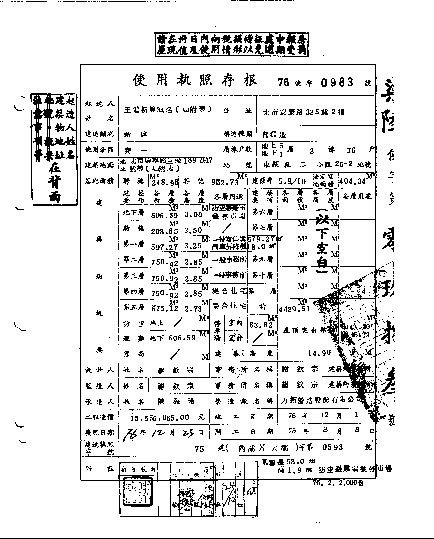 - 備註說明:使用執照存根附表