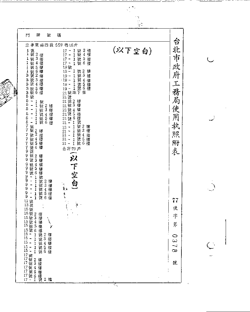 - 備註說明:使用執照存根附表