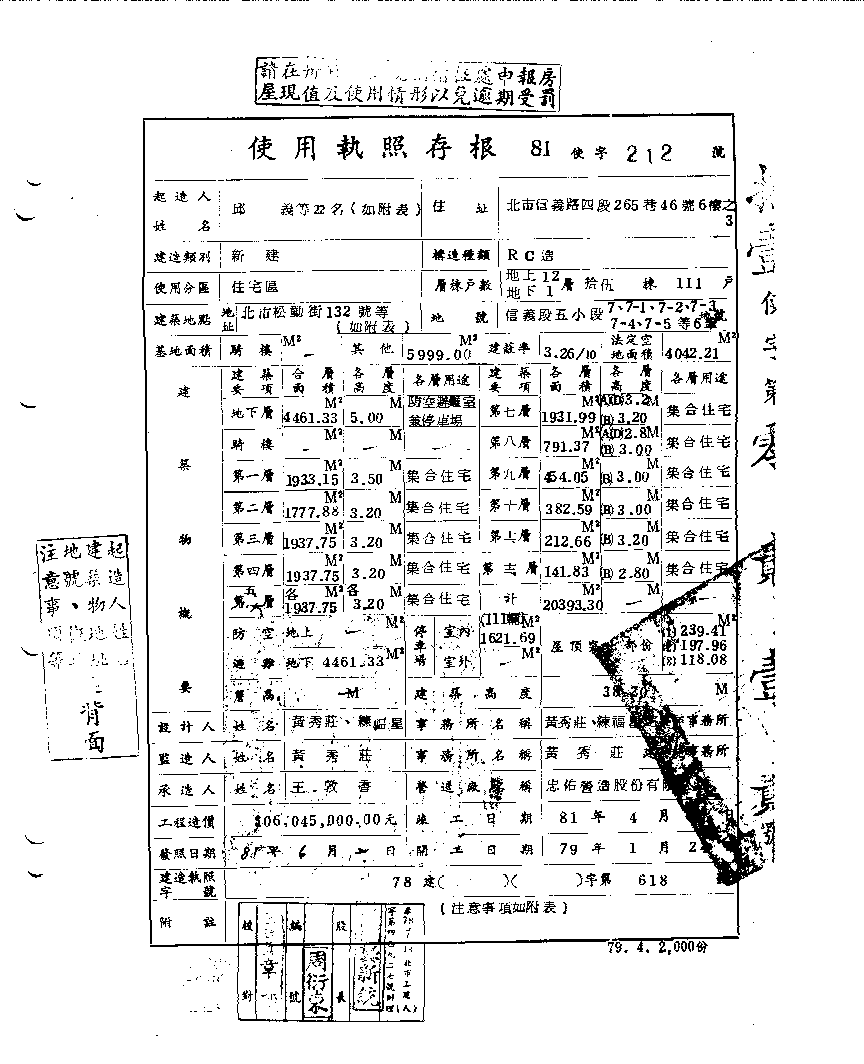 - 備註說明:使用執照存根附表