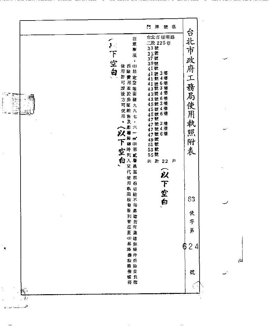 - 備註說明:使用執照存根附表
