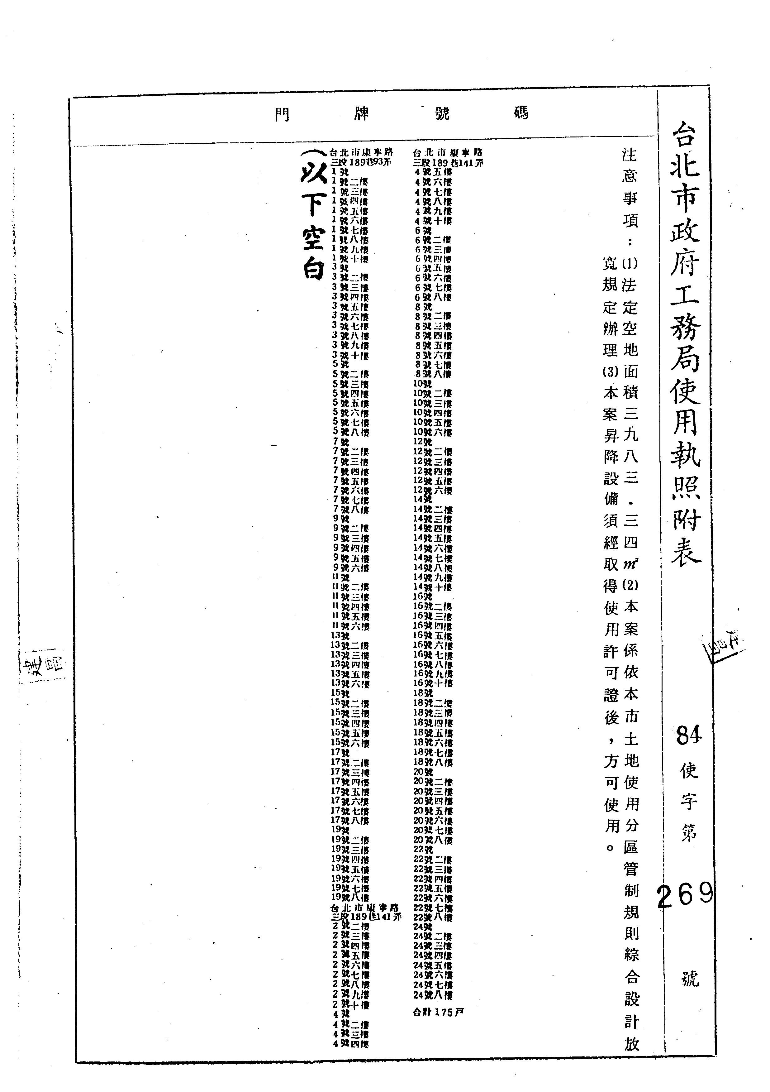 - 備註說明:使用執照存根附表