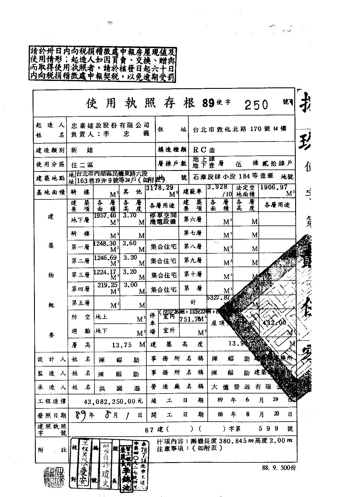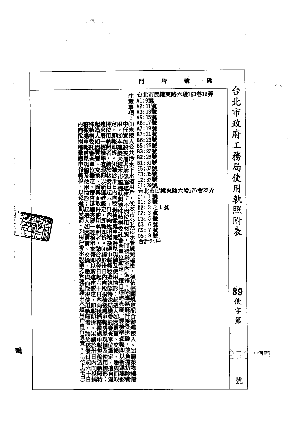 - 備註說明:使用執照存根附表